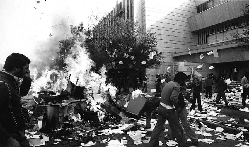 And, remember, now we’re moving into the autumn, and on 4 November 1979, the American Embassy is run over by students.