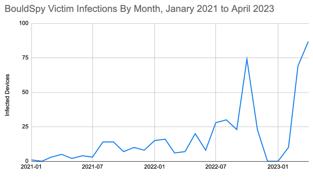 “Similar numbers of devices have been infected in March and April 2023, with 69 and 87 new infections respectively, suggesting another large increase in infection activity,” he said.