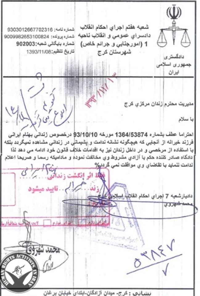 But Branch 7 of the Public Court of Karaj rejected his request, saying in a statement: “Because there is no sign of remorse in the prisoner, but he is continuing his illegal actions, so the court is rejecting this request and until the time that he officially and clearly states his remorse, it will be rejected.”