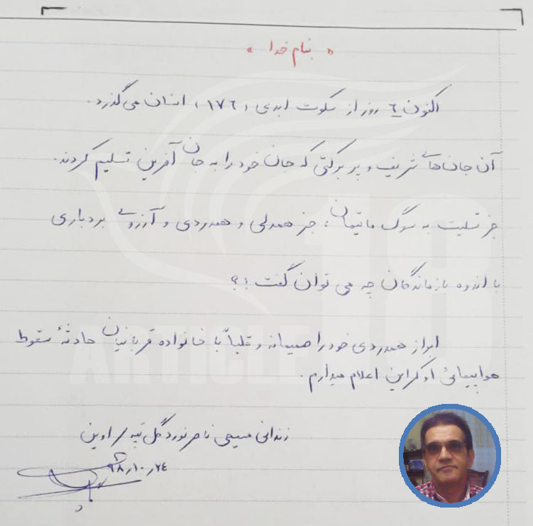 An Iranian Christian serving a ten-year prison sentence for his membership of a house-church has shared his condolences with the families of those who lost loved ones during the recent downing of a Ukrainian passenger plane.